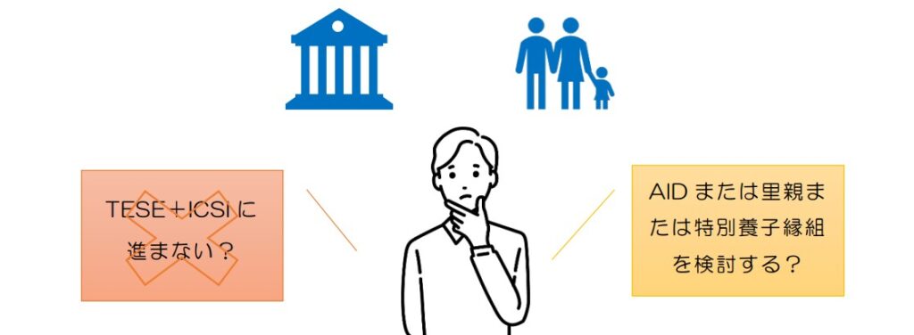 | TESE+ICSI(新鮮胚) | AID(提供精子を用いた人工授精) | |