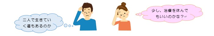 そのような時には、一旦、治療をお休みするという選択肢もあります。不安や心配事をパートナーと話し合ったり、医師や看護師と相談したりすることも有効です。まずはご自身の心身の状態に注目してみましょう。お休みの後に、治療を再開することは可能です。