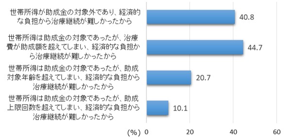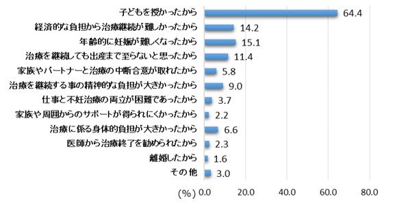 ♦治療の中断・終了は「経済的負担」「年齢」「出産に至らない」が主なきっかけでした(厚生労働省,2021)。