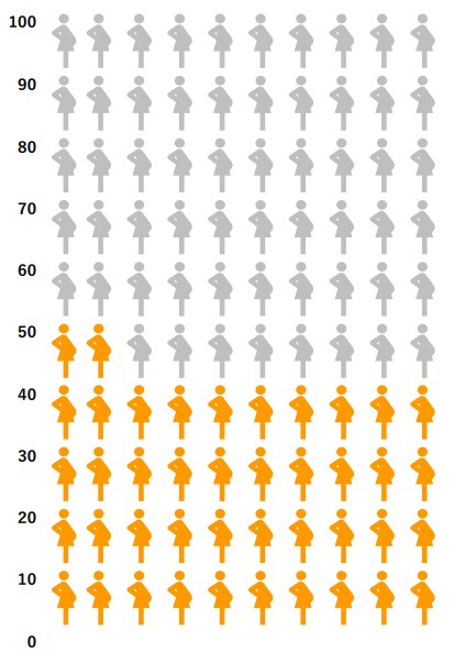 | 胚移植あたり 妊娠率 | ![]() Conventional TESEで精子を回収後に顕微授精・胚移植をした女性パートナー100人のうち42人が妊娠しました:胚移植あたり妊娠率42.1% *文献:湊ら(2022)を基に作図 | ![]() Micro-TESEで精子を回収後に顕微授精・胚移植をした女性パートナー100人のうち48人が妊娠しました:胚移植あたり妊娠率48.7% *文献:湊ら(2022)を基に作図 |